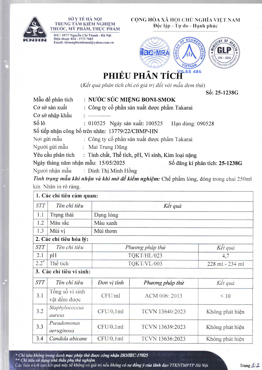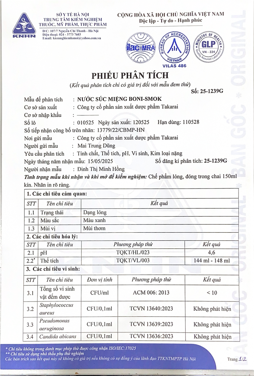 GIẤY PHÉP BONI-SMOK CỦA BỘ Y TẾ