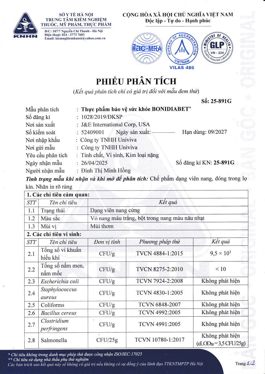 GIẤY PHÉP BONIDIABET+ CỦA BỘ Y TẾ