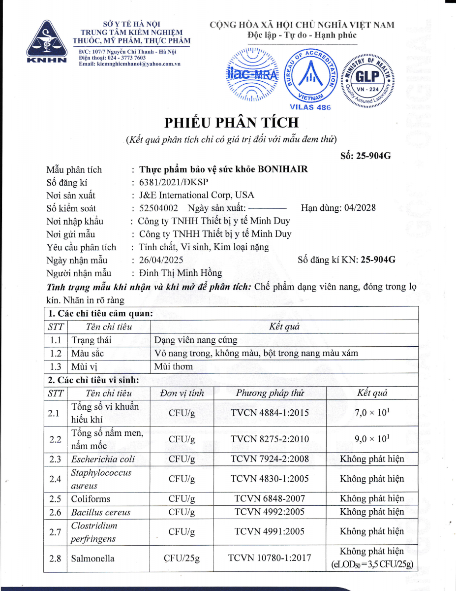 GIẤY PHÉP BONIHAIR CỦA BỘ Y TẾ
