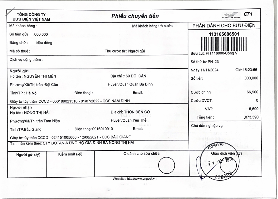 Bây giờ chỉ có ước mơ thành bác sĩ của Chí là quá xa vời khi sức khỏe của cả hai bà cháu đều không tốt và gia cảnh quá khó khăn, việc tiếp tục theo đuổi học tập cũng là gánh nặng rất lớn với bà cháu Chí. Và đây cũng chính là lý do mà công ty Botania chúng tôi liên hệ ngay với bà Hải để mong muốn góp một phần sức lực của mình giúp Chí theo đuổi giấc mơ, mong cuộc sống của hai bà cháu sẽ bớt đi sự cực khổ, mong bữa cơm đạm bạc sẽ có thêm chút thịt cá. Tuy nhiên vì hoàn cảnh nên chúng tôi không thể tới tận nơi thăm bà cháu được, định nhờ chuyển khoản ngân hàng gửi tới bà cháu Chí chút quà nhưng không ngờ họ cũng không có tài khoản ngân hàng. Không bỏ cuộc, công ty Botania chúng tôi gửi chuyển phát tới cho bà và cuối cùng bà cháu Chí đã nhận được tấm lòng của chúng tôi.