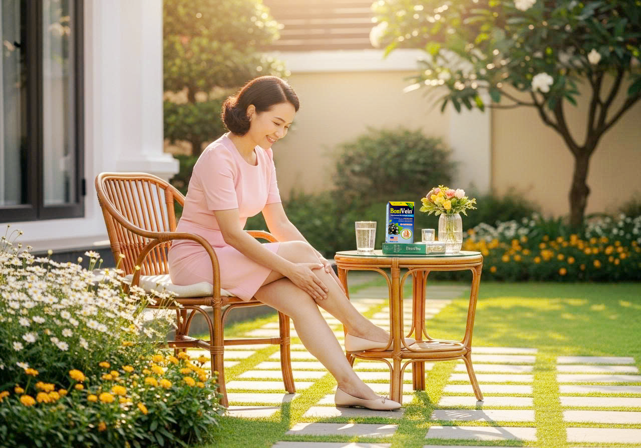 Chào chuyên gia , tôi có cửa hàng tạp hóa cũng đông khách nên cứ đứng bán hàng suốt. Cách đây mấy năm tôi có triệu chứng đau mỏi chân, nhức bắp chân cứ tưởng bị khớp nên uống thuốc khớp mãi chẳng khỏi. Cách đây 3 năm, tôi đi khám mới biết là bị suy giãn tĩnh mạch, uống thuốc tây 1 thời gian, lúc đầu thì có đỡ nhưng sau lại như cũ nên tôi bỏ không uống nữa. Bây giờ chân tôi cứ bị từng mảng tím một, đau nhức lắm. Tôi còn không đứng nấu cơm hay rửa bát được, bán hàng thì chịu, phải thuê người bán. Chân tay tôi cứ va vào đâu là tím ở đấy, có khi chẳng va gì vẫn có những mảng tím bầm. Tôi sử dụng BoniVein có được không?