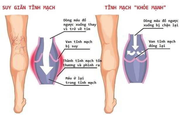 Khi các van tĩnh mạch này hoạt động không đúng cách, bị suy yếu hoặc bị hỏng, máu trong tĩnh mạch sẽ bị chảy dồn ngược lại và ứ đọng tại tĩnh mạch ngoại vi, gây ra giãn tĩnh mạch hay còn được gọi là suy giãn tĩnh mạch.