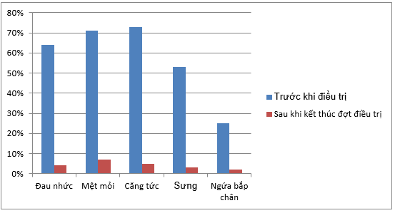Biểu đồ thể hiện những triệu chứng của bệnh nhân trước và sau đợt điều trị khi sử dụng cao hạt dẻ ngựa